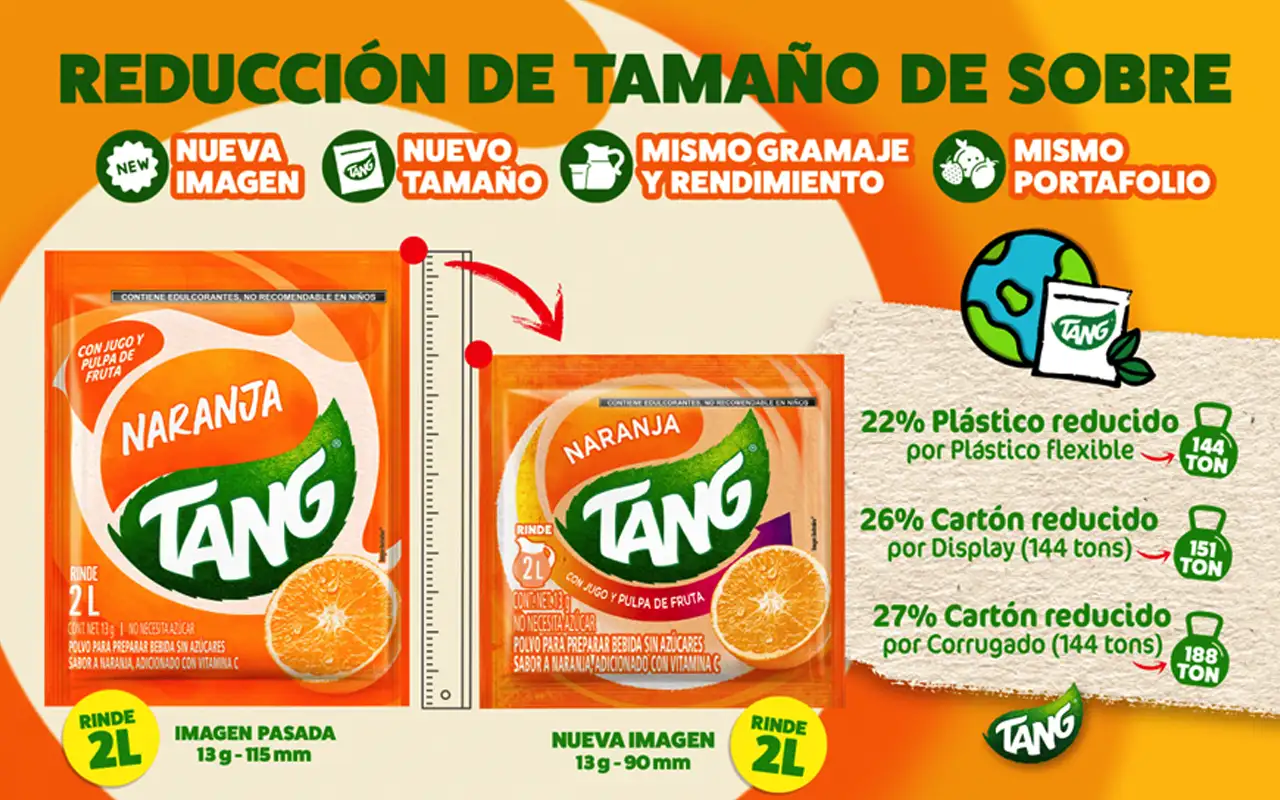 • Mondelez Snacking México redujo 400 toneladas anuales de residuos de plástico y cartón al rediseñar el empaque de Tang.